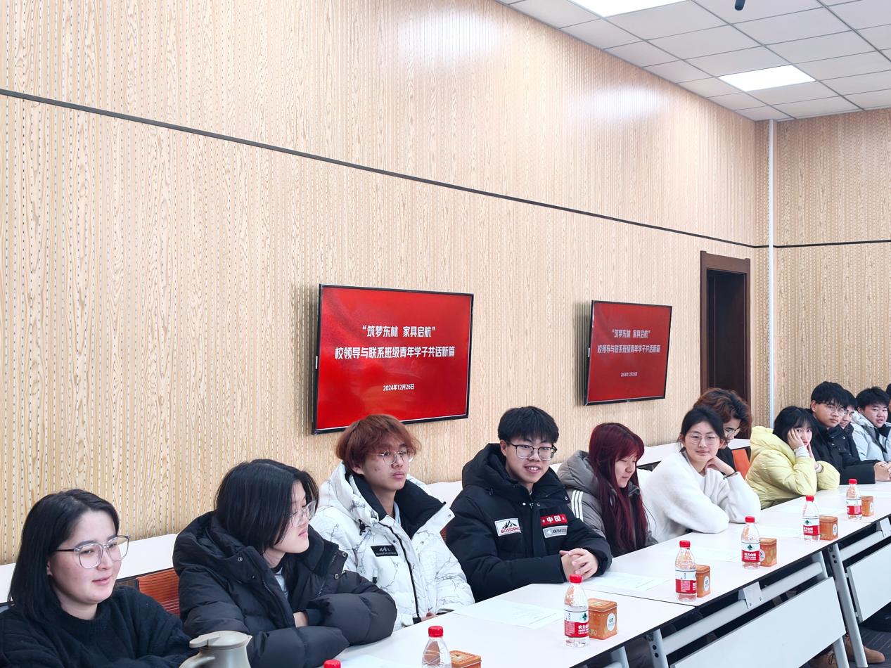 为深入学习贯彻习近平总书记关于新质生产力的重要论述,贯彻落实全国教育大会精神,12月26日,学校党委常委、副校长孙猛走进联系班级、家居与艺术设计学院2024级家具设计与工程专业1班,参加“筑梦东林,家具启航”主题班会。班会主要围绕校园文化环境的融入、新质生产力如何赋能家具设计与工程专业的发展以及个人职业规划的展望等几个方面展开。家居与艺术设计学院党委副书记兼副院长刘子英参加活动,活动由家居学院团委书记唐金栋主持。